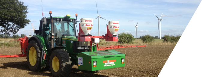 We use a Kuhn Aero 2224 boom spreader to apply Avadex at 24m, mounted on a John Deere 6420s tractor fitted with 650 & 480 Michelin Xeobib tyres and full GPS assisted steering. The service is carried out by a fully trained operator who is PA4 qualified and NRoSO registered. The spreader can also apply fertiliser, OSR, grass seeds, mustard, slug pellets etc.